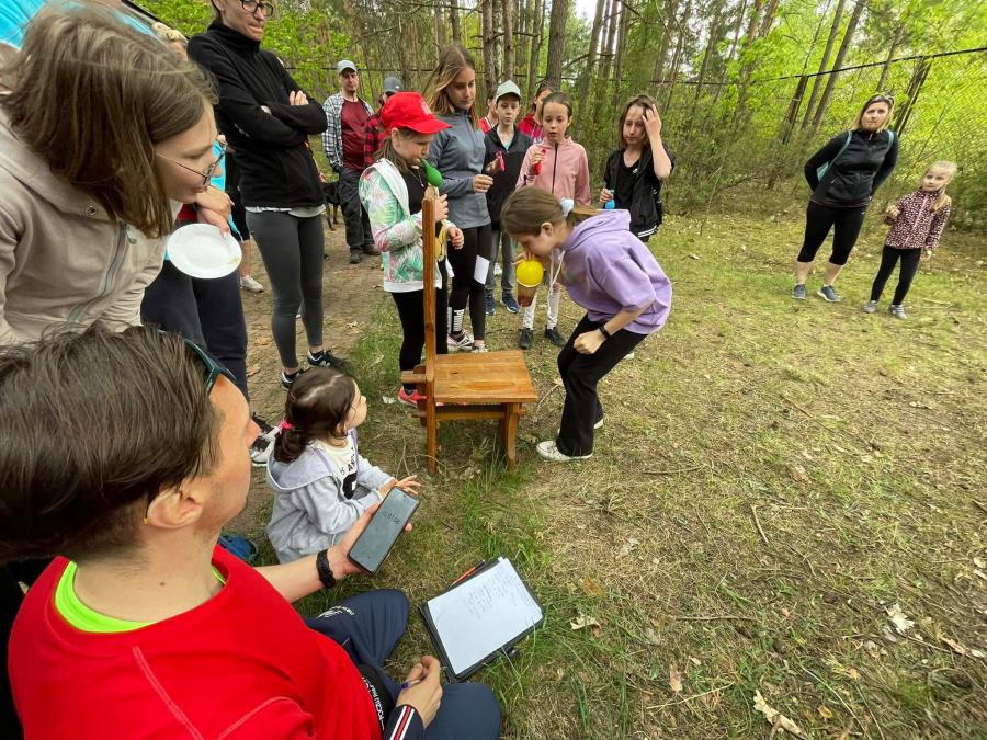 Na mecie czekały kolejne atrakcje - ognisko z pieczeniem kiełbasek oraz niezwykle emocjonujące konkurencje sportowo-sprawnościowe z nagrodami. W rzucie szyszką do celu zwyciężyli Gabrysia Zaręba (kategoria do 13 lat) oraz Piotr Bajerowski (kategoria powyżej 13 lat). W konkurencji rzutu jajkiem w parach bezkonkurencyjni okazali się Mateusz Kwaśniak i Piotr Bajerowski. Z kolei w konkurencji przenoszenia papierowych kubków za pomocą balonu zwyciężyła Zuzia Duchnik.