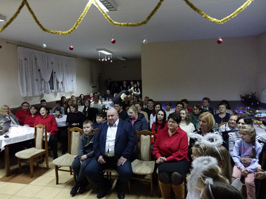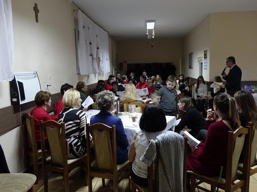 Po przemówieniach zebrani podzielili się opłatkiem i zasiedli do wieczerzy przygotowanej przez panie z KGW. Na stołach królowały typowo wigilijne potrawy, a po świetlicy jeszcze długo rozchodził się śpiew wspólnie wykonywanych kolęd.