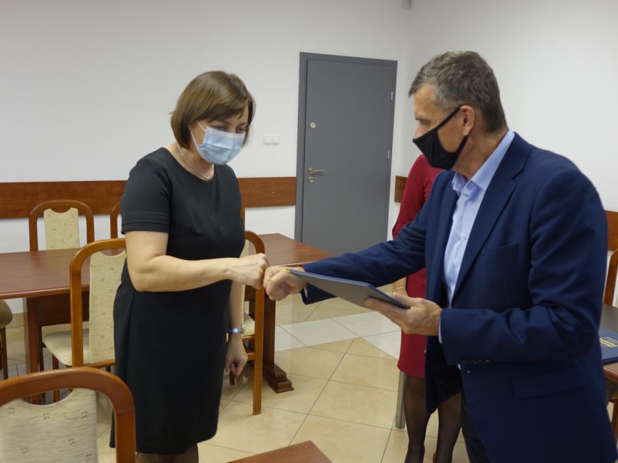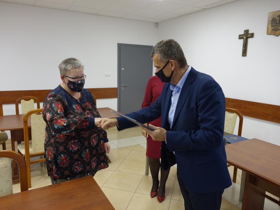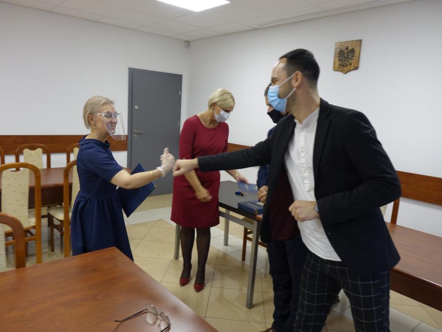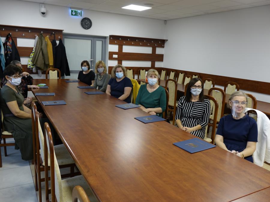 Z rąk Burmistrza Janusza Reszelewskiego nagrodzone panie odebrały okolicznościowe dyplomy, natomiast bezpośrednią formą gratulacji od samorządowców był tym razem nie uścisk dłoni, ale bardziej higieniczny „żółwik”. Oczywiście nie zabrakło podziękowań za pracę włożoną w edukację młodych ludzi - szczególnie w tak trudnym, bo naznaczonym pandemią koronawirusa roku szkolnym 2019/2020. Burmistrz życzył zebranym dobrego zdrowia oraz kolejnych sukcesów na niwie zawodowej.