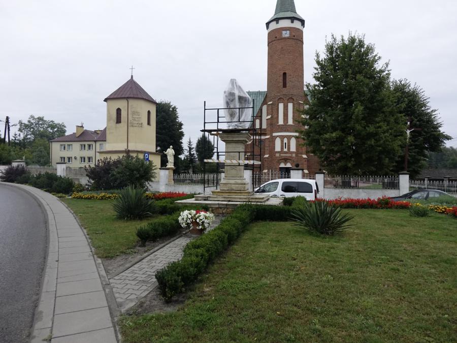 2. Renowacja pomnika św. Jana Nepomucena przed kościołem parafialnym w Drzewicy. Zostały wykonane pierwsze prace związane z usunięciem zabrudzeń. Termin realizacji przewidywany jest na 12 października 2019r.