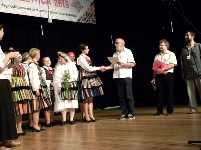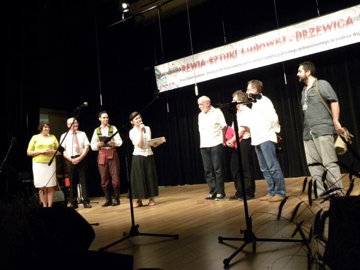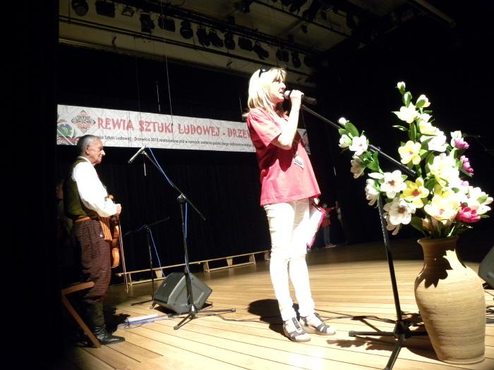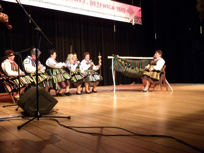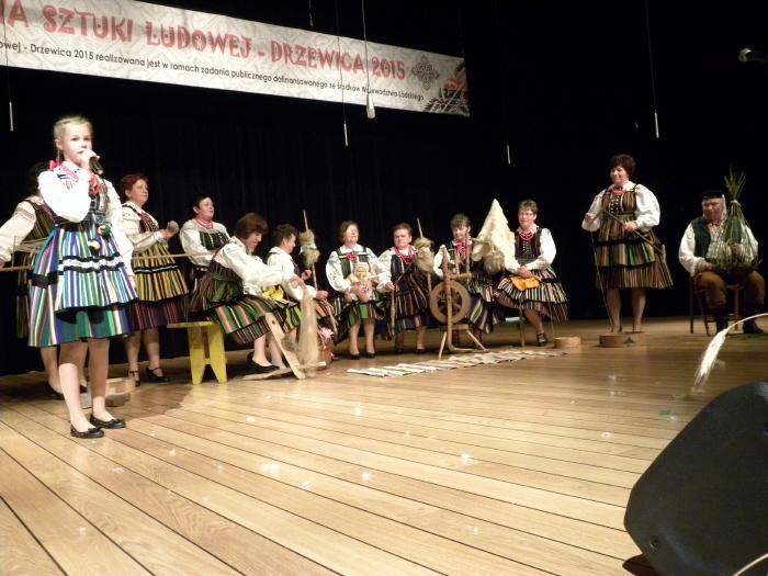 Druga część imprezy odbyła się na sali widowiskowej Regionalnego Centrum Kultury w Drzewicy. Gości przywitał Prezes Zarządu DCW „Ofiarna dłoń” Dominik Niemirski przedstawił partnerów merytorycznych, patronów honorowych oraz medialnych Rewii Sztuki Ludowej Drzewica 2015, a także powitał przybyłych gości. Po krótkich przemówieniach rozpoczęła się prezentacja scenek przygotowanych przez Koła Gospodyń Wiejskich. Przez ponad dwie godziny widzowie mieli okazję poznać tradycje i obrzędy ludowe ziemi drzewickiej. Stoisko wystawiennicze, potrawę oraz występ artystyczno-estradowy oceniało Jury Przeglądu w składzie: Aldona Plucińska – starszy kustosz w Muzeum Archeologicznym i Etnograficznym w Łodzi, dr Piotr Czepas – kurator Zespołu Działów Etnograficznych w Muzeum Archeologicznym i Etnograficznym w Łodzi, dr Marcin Piotrowski – Zakład Etnologii i Folklorystyki, Instytut Etnologii i Antropologii Kulturowej Uniwersytetu Łódzkiego, dr Damian Kasprzyk – Prezes Łódzkiego Oddziału Polskiego Towarzystwa Ludoznawczego oraz Zbigniew Skuza – Zastępca Dyrektora ds. muzealnych Muzeum Wsi Radomskiej. W czasie obrad Jury przed publicznością z programem artystycznym wystąpiło gościnnie Koło Gospodyń Wiejskich z Dęby Opoczyńskiej wraz z uczniami klas I-III Filialnej Szkoły Podstawowej w Brudzewicach. Następnie na scenę poproszono Organizatorów, członków Jury oraz Posłankę na Sejm RP Dorotę Rutkowską, która ufundowała dodatkowe nagrody rzeczowe oraz słodkie upominki. Decyzją członków Jury w Rewi Sztuki Ludowej Drzewica 2015 zwyciężyło Stowarzyszenie Moje Tradycje i Innowacje z Żardek, które przygotowało, jako potrawę tradycyjną – kapustę z grochem oraz scenkę związaną z obrzędem rodzinnym – oczepiny. Przewodnicząca Jury Aldona Plucińska pokreśliła, że wszystkie Koła przygotowały się do konkursu bardzo dobrze, co w rezultacie dało zbliżony poziom wszystkich prezentacji.