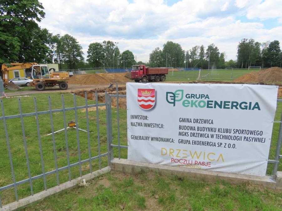 Zadanie pn. „Budowa budynku Miejsko-Gminnego Klubu Sportowego Drzewica w technologii pasywnej” realizowane jest w formule „zaprojektuj i wybuduj”. Rolę głównego wykonawcy pełni wyłoniona na podstawie przetargu Grupa Ekoenergia Sp. z o.o. z Sierakowic Prawych (gm. Skierniewice), która po zaprojektowaniu budynku oraz spełnieniu wszelkich wymogów formalno-prawnych, w tym uzyskaniu pozwolenia na budowę, rozpoczęła prace budowlane.