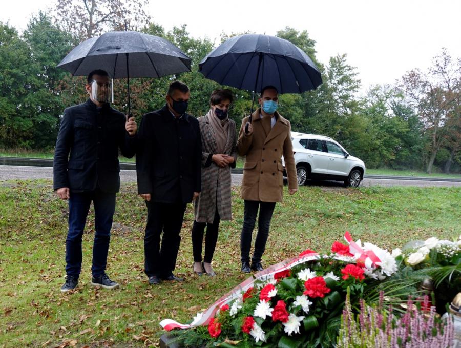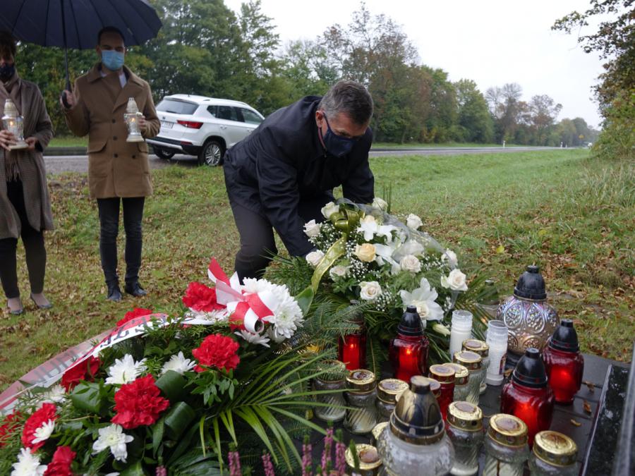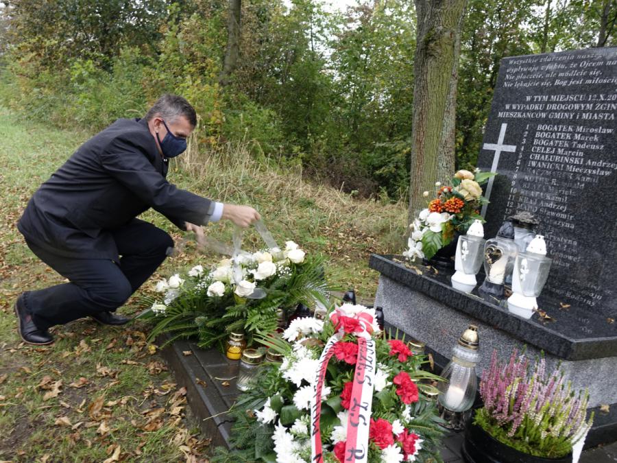 Pod tablicą z nazwiskami ofiar wypadku oraz cytatem Św. Jana Pawła II ("Wszystkie zdarzenia naszego życia wypływają z faktu, że Ojcem naszym jest Bóg. Nie płaczcie, ale módlcie się. Nie lękajcie się, Bóg jest miłością i kocha nas") samorządowcy złożyli wiązankę kwiatów oraz zapalili symboliczne znicze. Po modlitwie pamięć zmarłych uczcili minutą ciszy.