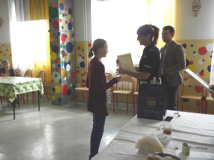 Za zajęcie najlepszych miejsc indywidualnie oraz I miejsca drużynowo, uczniowie otrzymali nagrody rzeczowe ufundowane przez Urząd Gminy i Miasta w Drzewicy, które zostały wręczone przez st. post. Joannę Bartyzel oraz w imieniu Burmistrza Drzewicy przez dyrektora Andrzeja Krzyżanowskiego.