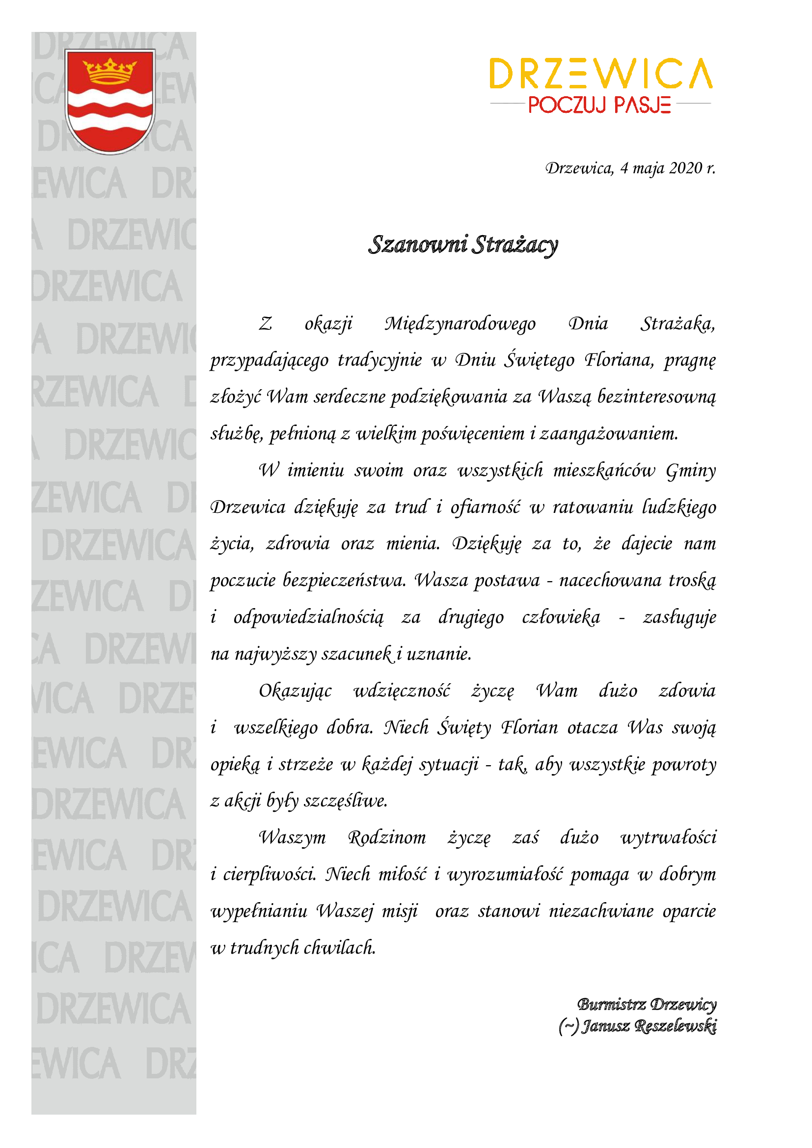 Życzenia z okazji Dnia Strażaka