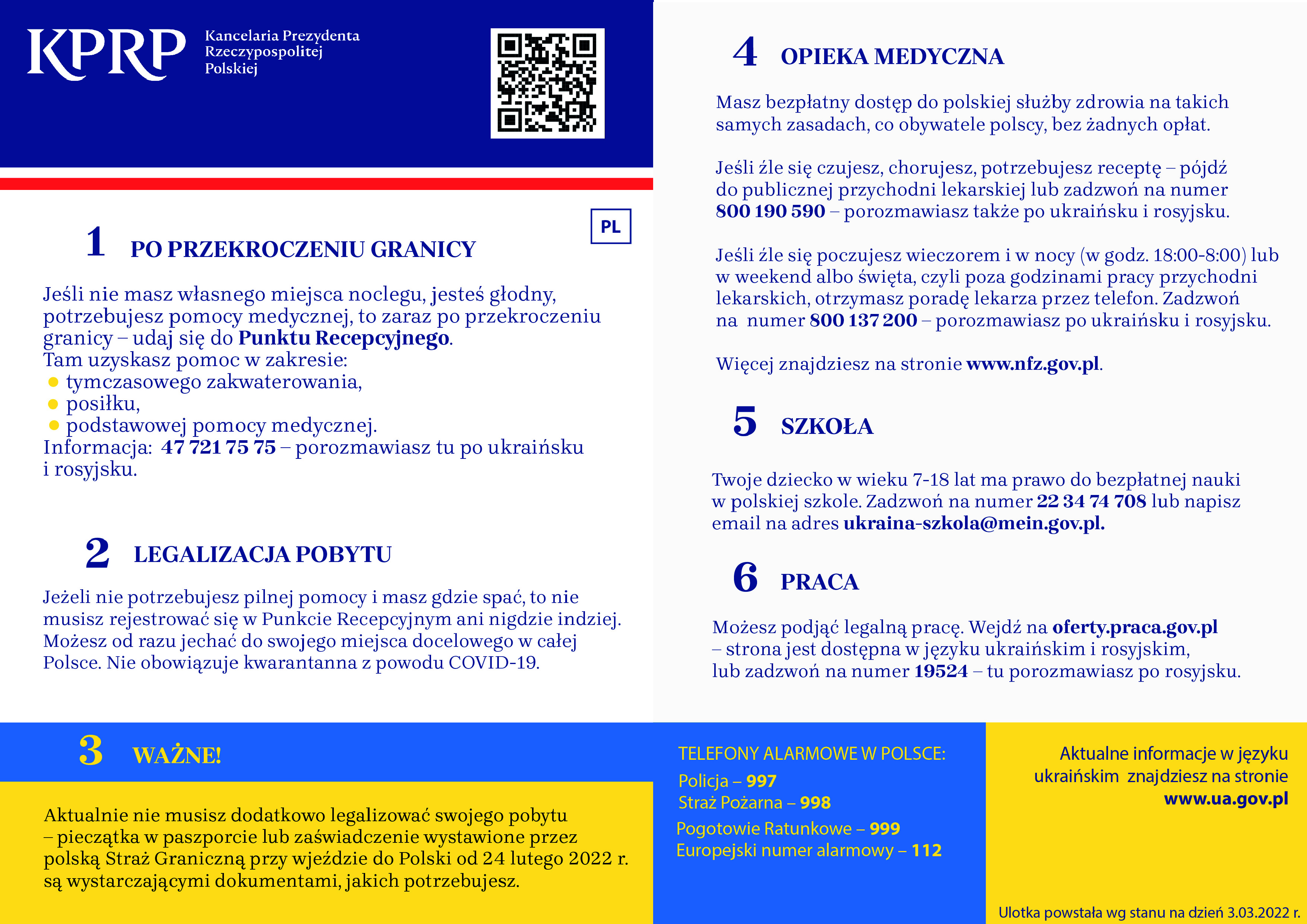 Informacja dla uchodźców z Ukrainy - pierwsze kroki w Polsce