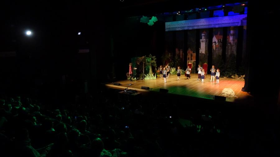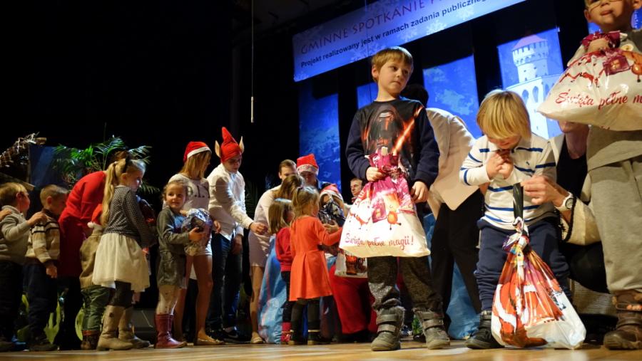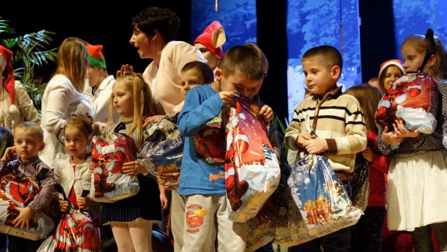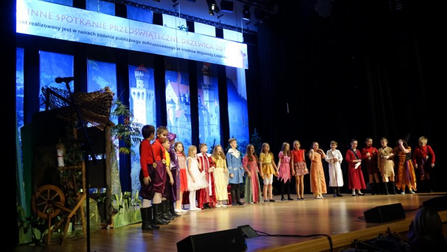 Następnie na scenę wkroczyli aktorzy z Regionalnego Centrum Kultury z przedstawieniem teatralnym „Śpiąca Królewna” w reżyserii Marty Szymańskiej. Swoim występem Spotkanie wzbogaciła również grupa wokalno-taneczna „Tęczusie”, która wykonała utwory znanego wszystkim zespołu – Arka Noego. W oczekiwaniu na wizytę Świętego Mikołaja, Prezes Zarządu DCW „Ofiarna dłoń” Dominik Niemirski wręczył podziękowania wszystkim koordynatorom IV Gminnego Spotkania Przedświątecznego. Podziękowania otrzymały również Koła Gospodyń Wiejskich z terenu gminy Drzewica, które, jak co roku przygotowały poczęstunek dla przybyłych gości. W czasie Spotkanie nie mogło zabraknąć kolędowania. Do wspólnego śpiewu swoim wspaniałym występem zachęcili uczestnicy Warsztatu Terapii Zajęciowej w Drzewicy. I nadszedł wreszcie długo wyczekiwany moment przez wszystkich uczestników Spotkania. Świętego Mikołaja, który przybył do Drzewicy w asyście śnieżynek i pomocników powitano gromkimi brawami, a także wierszykiem w wykonaniu przedszkolaków. W ramach IV Gminnego Spotkania Przedświątecznego rozdano 275 paczek, w tym 250 paczek dla dzieci i młodzieży oraz 25 paczek dla osób z niepełnosprawnością.
