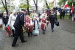 Po mszy przemaszerowano na plac Wolności, gdzie odbyły się główne uroczystości. Ceremonię prowadził gminny komendant ochrony przeciwpożarowej bryg. Marian Kłobucki. Ze względu na pogodę, program został skrócony. Przemówienie okolicznościowe wygłosił burmistrz Janusz Reszelewski. Nawiązał do sytuacji na Ukrainie podkreślił, że wolność nie jest nam dana raz na zawsze. Trzeba o nią stale dbać. Podziękował też mieszkańcom za obecność. Pod pomnikiem złożono kwiaty i wieńce. Zebrani podziękowali dzieciom nie tylko za patriotyczną postawę, ale także za to, że dzielnie wytrwały w strugach deszczu i chłodzie.