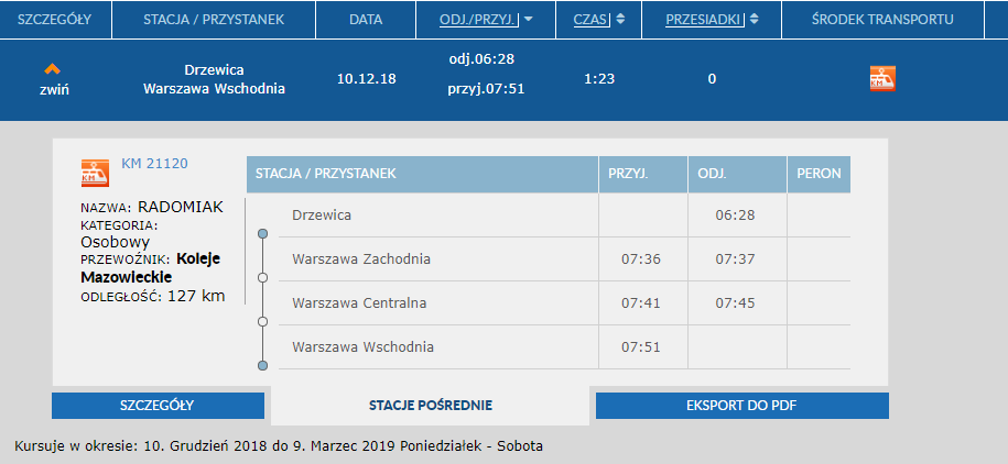 Zmiana trasy pociągu daje nam możliwość BEZPOŚREDNIEGO PODRÓŻOWANIA POCIĄGIEM KOLEI MAZOWIECKICH Z DRZEWICY DO WARSZAWY.