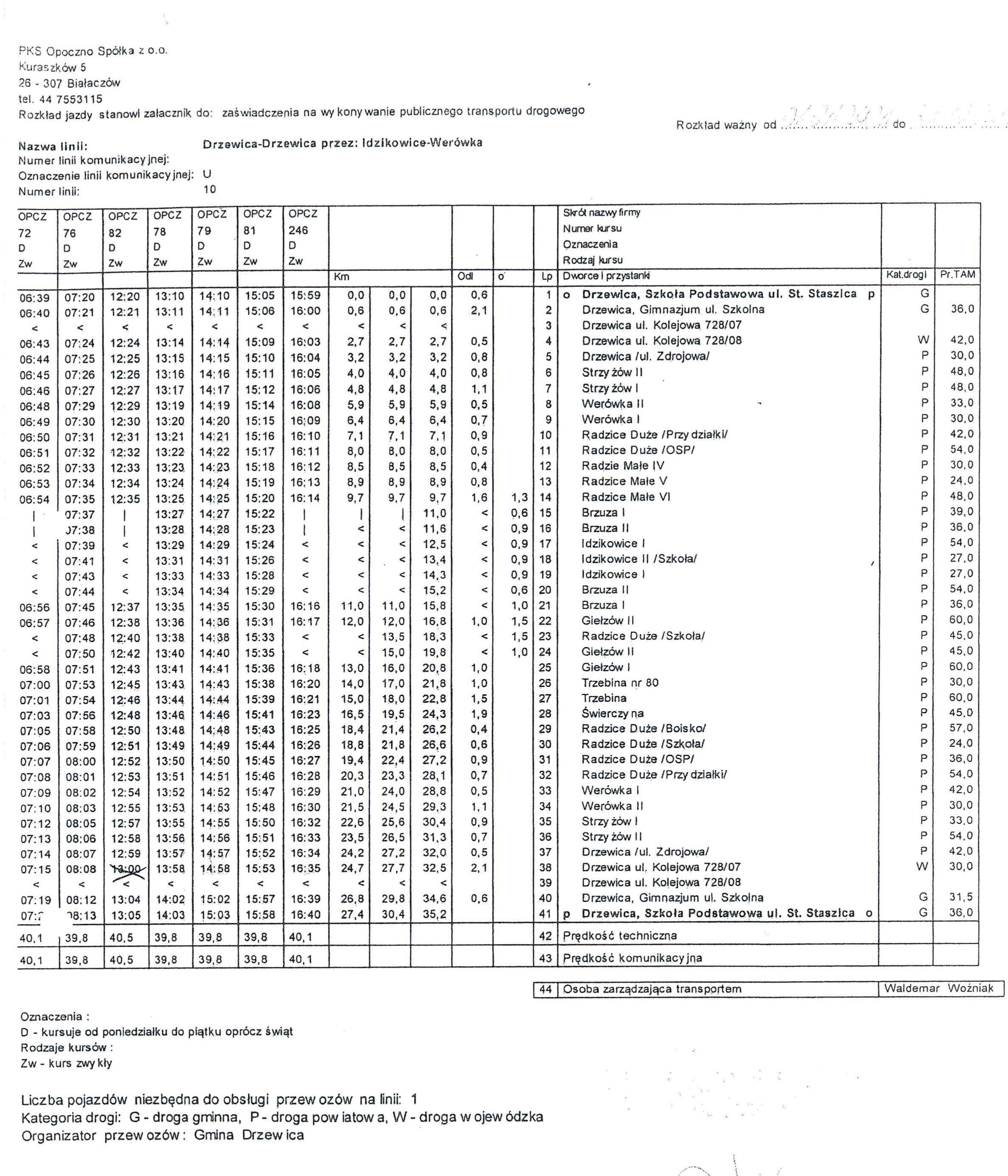 Autobusy według powyższego rozkładu będą kursowały od poniedziałku do piątku oprócz świąt w okresie 1 stycznia – 31 grudnia 2021 roku.