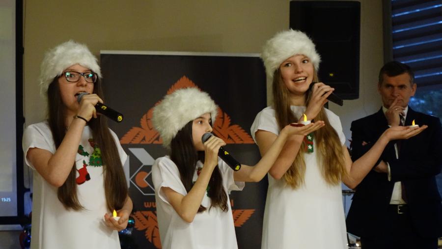 Spotkanie rozpoczęło się od przekazania na ręce Burmistrza betlejemskiego światełka pokoju, które przynieśli harcerze. Następnie wszystkich przybyłych w świąteczny nastrój wprawiły dziewczynki z grupy wokalnej Four M, pod kierownictwem Pani Małgorzaty Malczewskiej, które jak zawsze w pełni profesjonalnie zadbały o oprawę artystyczną spotkania. Tradycją na spotkaniach wigilijnych Urzędu staje się wspólne kolędowanie, czego i w tym roku nie zabrakło.