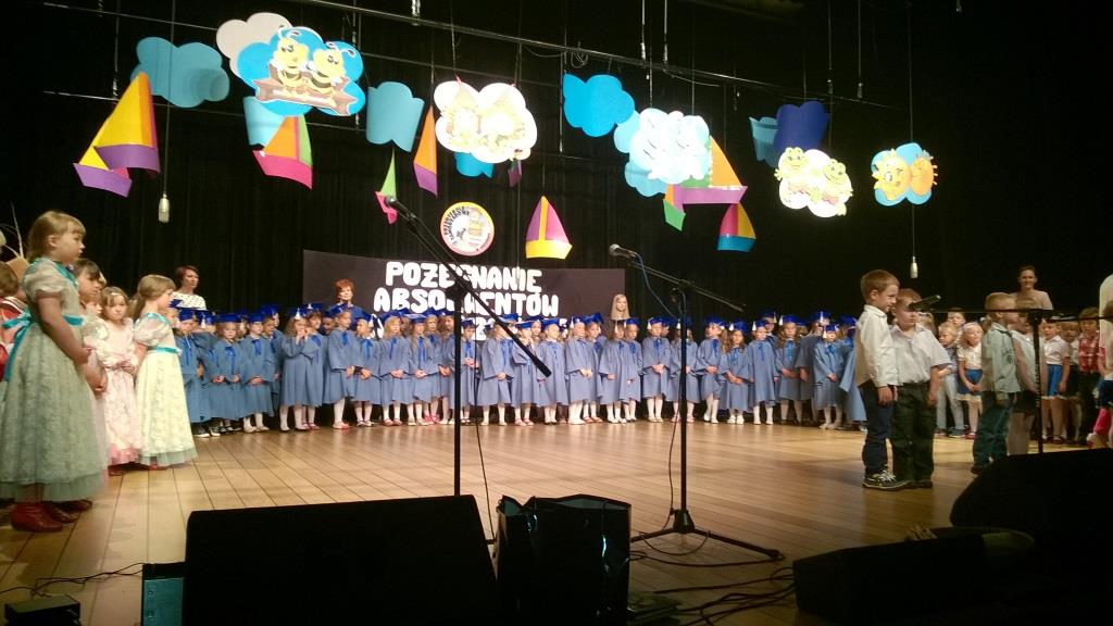 W dniu 25 czerwca 2015r. odbyło się uroczyste pożegnanie przedszkolaków kończących pierwszy etap edukacji oraz zakończenie roku przedszkolnego dla pozostałych dzieci. Uroczystość odbyła się w sali widowiskowej RCK w Drzewicy. Na wstępie na scenie zaprezentowali się absolwenci, odświętnie ubrani w togi i birety oraz stosowne do tańców stroje. Zgodnie z tradycją birety zostały podrzucone i rok przedszkolny oficjalnie zakończono. Następnie dyrektorka przedszkola Edyta Kołomańska wręczyła dyrektorce Publicznej Szkoły Podstawowej im. Polskich Olimpijczyków w Drzewicy Pani Renacie Smolarek pamiątkowe tablo z listami dzieci, które rozpoczną naukę w klasie pierwszej. Zaproszeni goście gratulowali absolwentom szczęśliwego dotarcia do „mety”. Burmistrz Gminy i Miasta Drzewica Janusz Reszelewski obdarował dzieci słodkim upominkiem. Dyrektor przedszkola życzyła wszystkim zebranym dobrego odpoczynku, aby czas wakacji był czasem nabierania sił do dalszej nauki. W uroczystości uczestniczyli także: dyrektor Zespołu Ekonomicznego Szkół Andrzej Krzyżanowski i Anna Reszelewska Przewodniczą Towarzystwa Przyjaciół Drzewicy. W uroczystym zakończeniu roku szkolnego licznie uczestniczyli rodzice przedszkolaków. Na zakończenie uroczystości wszyscy zebrani obejrzeli film pt. ”Rok z życia przedszkola w 5 minut”. Dalsza część uroczystości przebiegała w budynku przedszkola. Tutaj nauczycielki rozdały dzieciom pamiątkowe dyplomy ukończenia przedszkola.